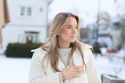 Helene har tatovert semikolon på håndleddet sitt, og har vært med på å lage disse smykkene. Hun bærer sin egen historie, valgte å fortsette å stå igjennom sine ting, og har det godt idag.